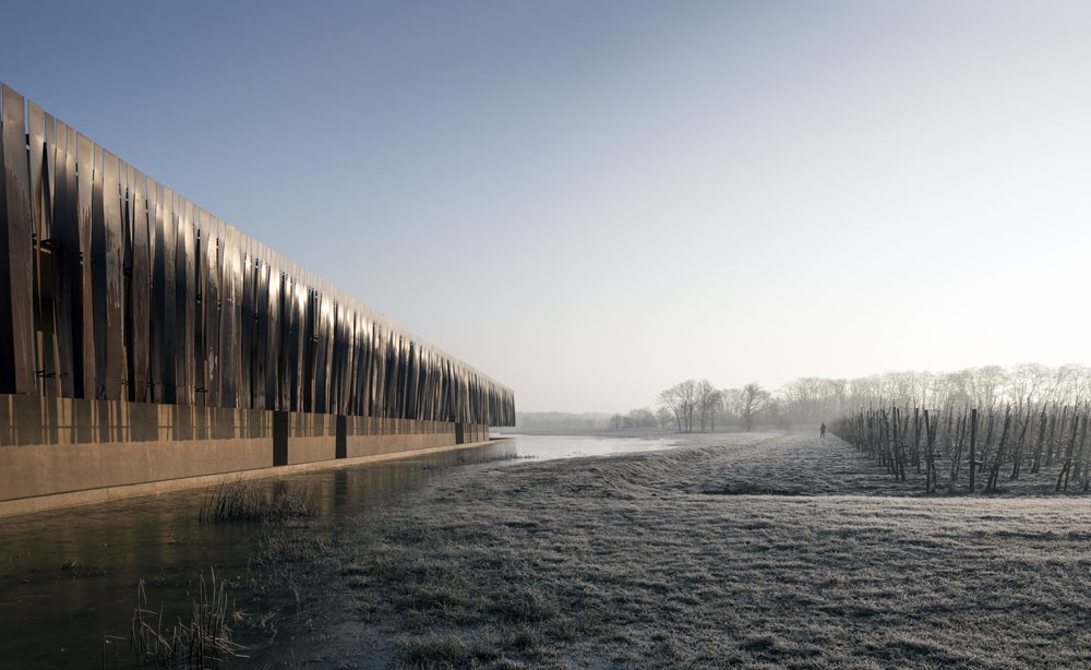 The move towards better crematoriums is particularly pronounced in Europe – one of the most secular parts of the world. “Crematoriums tend to be too industrial,” says RCR’s Carme Pigem. “But death is a part of life. Once we leave the Earth we are still part of the universe, and architecture can help connect the two.” At Holsbeek they created a gently symbolic play of light and shadow. The thin steel strips encasing the building hang vertically, allowing light to shine onto the walls in a pattern which changes throughout the day and reflects the ripples on the water outside. Inside the sepulchral spaces where ceremonies take place, light pours through wells reaching into the centre of the room from the ceiling, creating a sense of intimacy and privacy. The crematorium is at the heart of a park with an orchard and two cemeteries full of wild flowers.